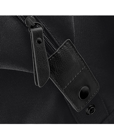 TearAway label for ease of rebranding, adjustable carry handles, authentic PU and metal accents, can be carried by hand or over the shoulder, extra long main compartment zip for easy access, zippered front pocket, internal baseboard