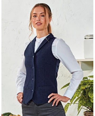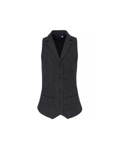An attractive, versatile waistcoat with for women's. Styled with a lapel collar that leads into the main body of the waistcoat with four button fastening. The Herringbone pattern has been achieved by two coloured yarns being woven together. This waistcoat is fully lined on the underside and to the reverse where there is a buckle for the wearer to adjust accordingly.