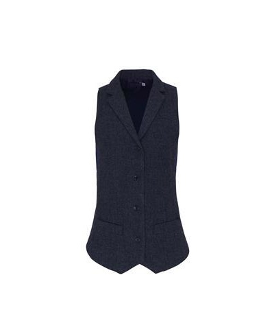 An attractive, versatile waistcoat with for women's. Styled with a lapel collar that leads into the main body of the waistcoat with four button fastening. The Herringbone pattern has been achieved by two coloured yarns being woven together. This waistcoat is fully lined on the underside and to the reverse where there is a buckle for the wearer to adjust accordingly.