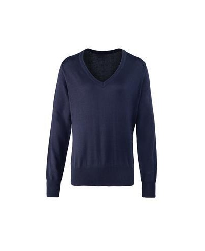 A cotton-rich women's V-neck sweater made from a fine gauge knit. The V-neck styling means this sweater can be worn over an open collared blouse or more formally with a scarf on the neckline. The ribbed knit cuff and hem make for a really contemporary piece.