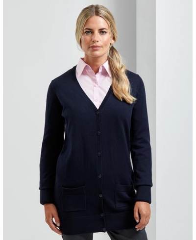 women's can layer up in style with this long-length knitted cardigan. Reflecting the latest high-street trends for cosy knits, this cotton rich-women's cardigan can be worn loosely over a blouse or fully buttoned though. The ribbed knit V-neck, cuffs and hem make for a comfortable fit offering excellent shape retention.