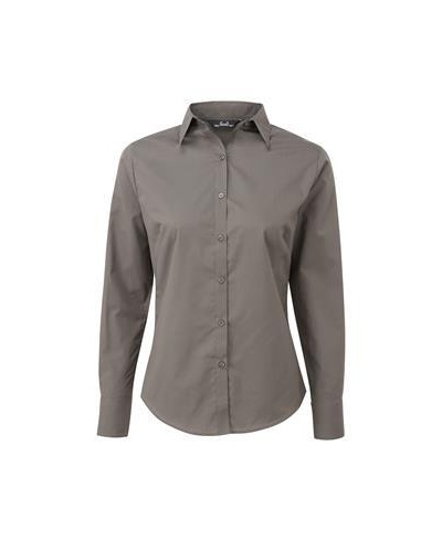 A stylish long sleeve women's blouse that comes in 27 colours. This blouse offers the wearer a semi-fitted feminine styling with a soft collar, bust, back darts and a rounded bottom hem.