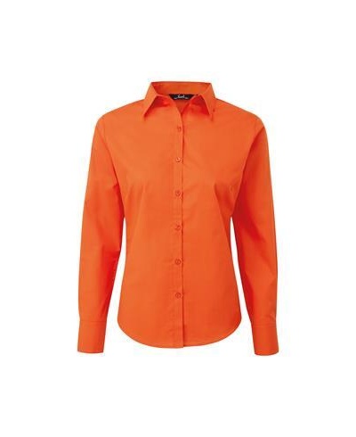 A stylish long sleeve women's blouse that comes in 27 colours. This blouse offers the wearer a semi-fitted feminine styling with a soft collar, bust, back darts and a rounded bottom hem.