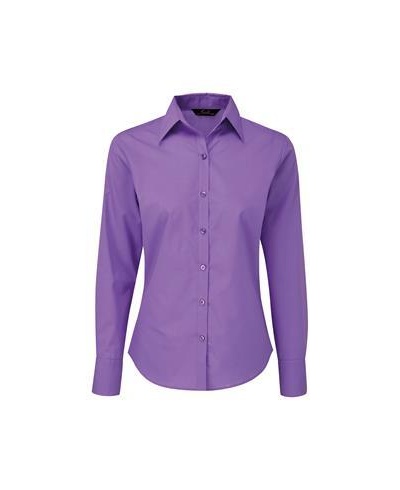 A stylish long sleeve women's blouse that comes in 27 colours. This blouse offers the wearer a semi-fitted feminine styling with a soft collar, bust, back darts and a rounded bottom hem.
