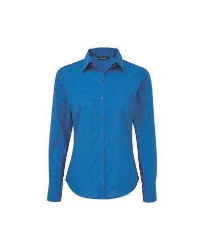 A stylish long sleeve women's blouse that comes in 27 colours. This blouse offers the wearer a semi-fitted feminine styling with a soft collar, bust, back darts and a rounded bottom hem.
