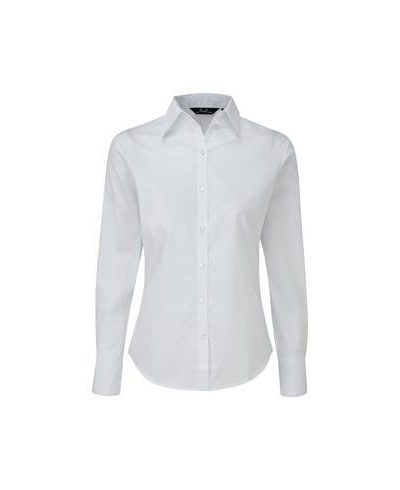 A stylish long sleeve women's blouse that comes in 27 colours. This blouse offers the wearer a semi-fitted feminine styling with a soft collar, bust, back darts and a rounded bottom hem.