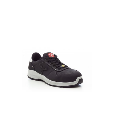 Women's low safety shoe, upper in water-repellent and breathable leather, inner lining (throughout the internal surface), breathable and resistant to abrasion, 6 + 6 metal-free eyelets, pampas grain heel guard with reflective insert, die-cast aluminium tip, Ortholite X40 016 ESD removable arch support, certified anti-puncture reinforced fabric insole, anti-torsion shank, horseshoe-shaped under-toe, ultra-light ESD polyurethane mid-sole, high tenacity and balanced density ESD polyether MASTER BALANCE cushioning, XTRAIL GRIP outsole in ESD TPU with heel and tip guard