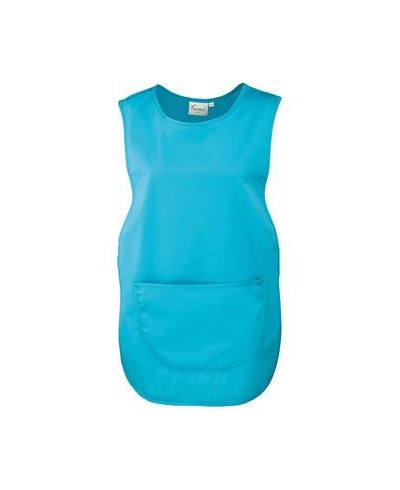 A traditional over-the-head tabard available in eighteen colours. This coverall fastens securely at the side with adjustable studs. In the centre is a large patch pocket with a bias trim edge.