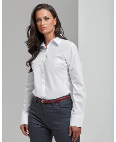 Our Supreme Poplin Shirt offers a heavier weight Poplin fabric. Soft collar detail, bust and back darts give this blouse a semi-fitted appearance. The long sleeves are fastened neatly with a double button cuff.