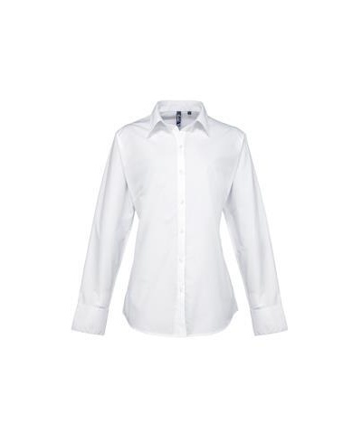 Our Supreme Poplin Shirt offers a heavier weight Poplin fabric. Soft collar detail, bust and back darts give this blouse a semi-fitted appearance. The long sleeves are fastened neatly with a double button cuff.