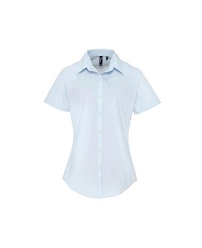 A women's short sleeve Supreme Poplin Shirt which comes in a heavy weight material for improved appearance. Soft collar detail, bust and back darts give this blouse a semifitted appearance.
