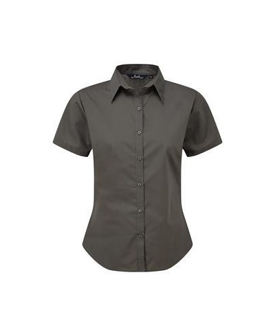 A women's short sleeve blouse with semi-fitted styling, available in 27 colours. The blouse features soft collar styling with bust and back darts and a rounded bottom hem for a really attractive piece of workwear.
