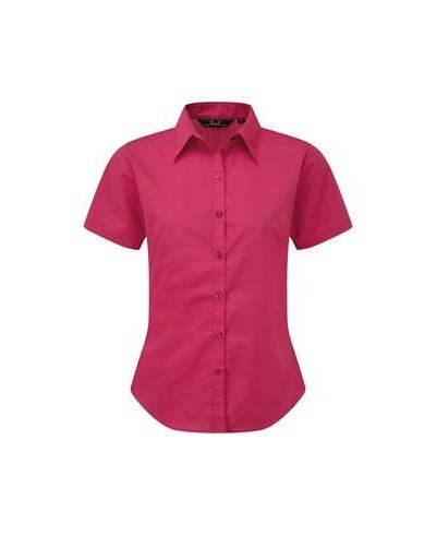 A women's short sleeve blouse with semi-fitted styling, available in 27 colours. The blouse features soft collar styling with bust and back darts and a rounded bottom hem for a really attractive piece of workwear.