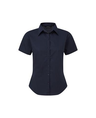 A women's short sleeve blouse with semi-fitted styling, available in 27 colours. The blouse features soft collar styling with bust and back darts and a rounded bottom hem for a really attractive piece of workwear.