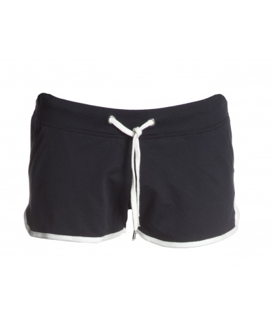 Women’s sweatpant Bermuda shorts with stretch waist and drawstring, two front pockets and contrasting trim