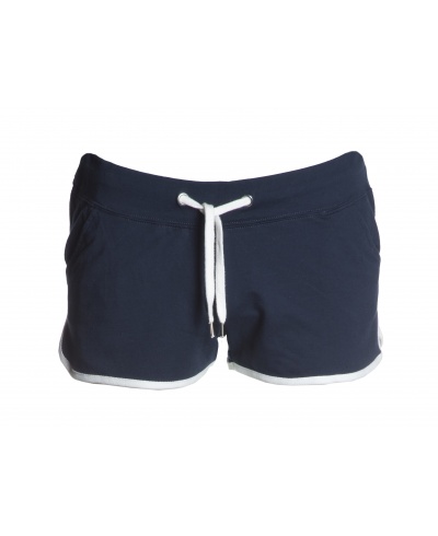 Women’s sweatpant Bermuda shorts with stretch waist and drawstring, two front pockets and contrasting trim