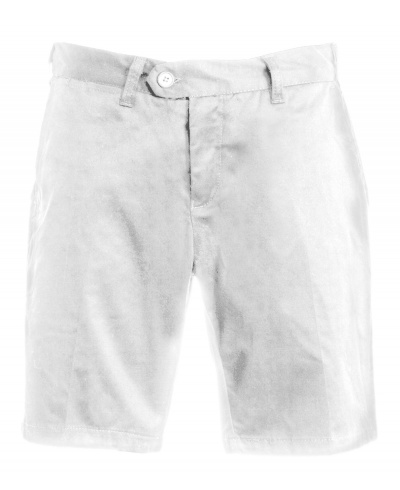 Women’s classic Bermuda shorts, with zip and button fastening, waist belt loops with two slanted front pockets and two slit back pockets with button