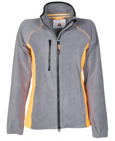 Women’s two-tone fitted fleece, with black plastic 8 mm zip, raglan sleeves, adjustable drawstring at the waist, elasticated cuffs, two pockets with concealed zip, one front zip pocket, neck with contrasting reinforcement tape, reinforced seams