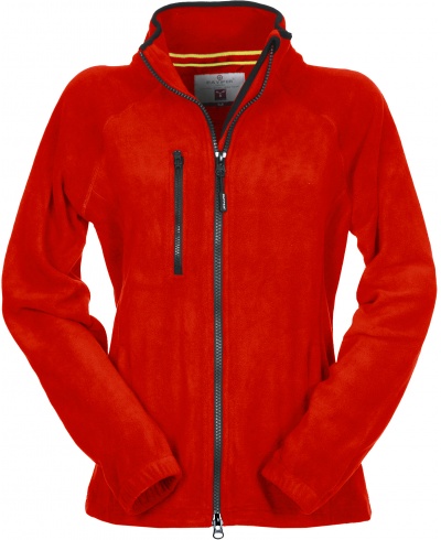 Women’s fitted fleece, with black plastic 8 mm zip, raglan sleeves, adjustable drawstring at the waist, elasticated cuffs, two pockets with concealed zip, one front zip pocket, neck with contrasting reinforcement tape, reinforced seams