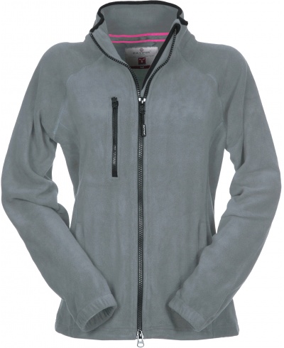 Women’s fitted fleece, with black plastic 8 mm zip, raglan sleeves, adjustable drawstring at the waist, elasticated cuffs, two pockets with concealed zip, one front zip pocket, neck with contrasting reinforcement tape, reinforced seams