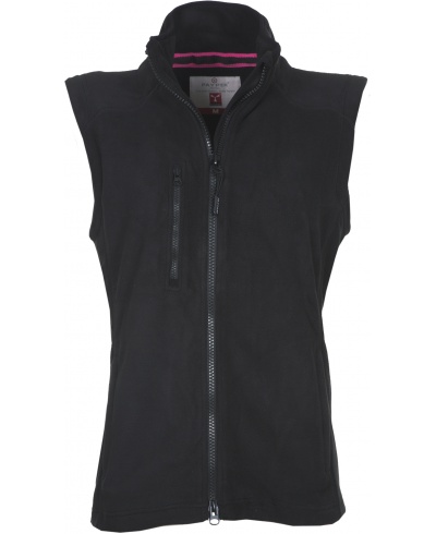 Women’s fleece vest, plastic zip with double pull, raglan fit, two front pockets with concealed zip and a breast zip pocket
