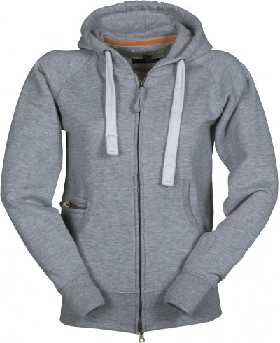 Women’s fitted hoodie with full, plastic-covered SBS zip with double metal pull, hood with double stitched seams and white drawstring with contrasting stitching and metal rings, raglan sleeves, kangaroo pockets, small zip pocket, stretch rib cuffs and hem, reinforced seams