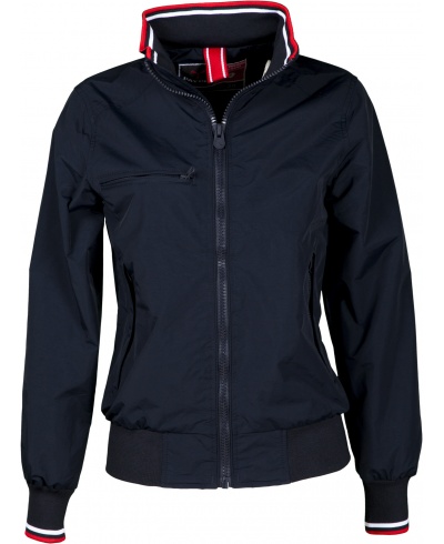 Women’s comfort-fit lightweight jacket, 8 mm plastic zip with metal pull, collar, cuffs and hem in elastic rib with stripes, two outer pockets with plastic zip, unpadded, mesh lining, one inner zip pocket with opening for smartphone headphones, zip on the back and chest for easier printing and embroidery