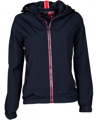 Women’s comfort-fit lightweight jacket with 8 mm contrasting zip, shaped hood with two seams and drawstring, elasticated waist, elasticated and adjustable cuffs, two outer pockets with concealed zip. Unpadded, mesh lining, one inner zip pocket with opening for smartphone headphones, zip on the back and chest for easier printing and embroidery
