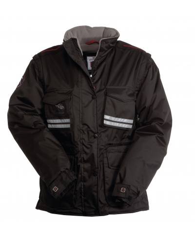 Women’s comfort-fit jacket with detachable sleeves, 8 mm plastic zip with metal pull, with flap fastening and plastic buttons, detachable and/or foldaway shaped hood, adjustable cuffs, grey reflective stripes on the front and back, pre-shaped elbows and side vent with gusset and zip, nine outer pockets, two with LOCK SYSTEM, two with zip and reinforced inner, one with a reversible badge holder. Padded, micro-fleece inside collar, back and lower back warmer, breathable underarm inserts, inner drawstring and zip for easier printing and embroidery