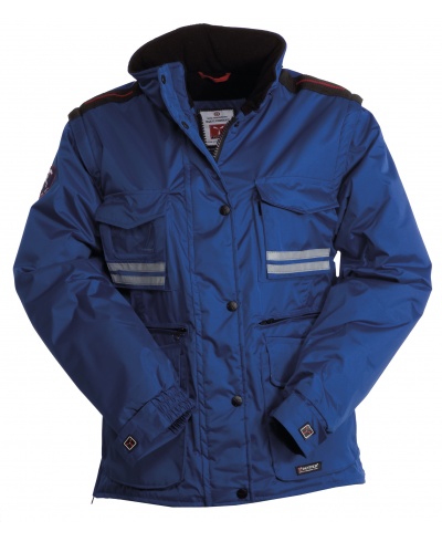 Women’s comfort-fit jacket with detachable sleeves, 8 mm plastic zip with metal pull, with flap fastening and plastic buttons, detachable and/or foldaway shaped hood, adjustable cuffs, grey reflective stripes on the front and back, pre-shaped elbows and side vent with gusset and zip, nine outer pockets, two with LOCK SYSTEM, two with zip and reinforced inner, one with a reversible badge holder. Padded, micro-fleece inside collar, back and lower back warmer, breathable underarm inserts, inner drawstring and zip for easier printing and embroidery