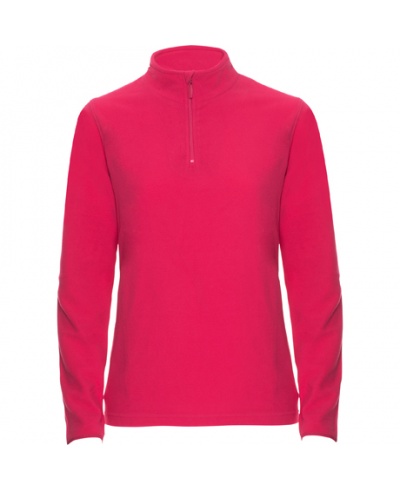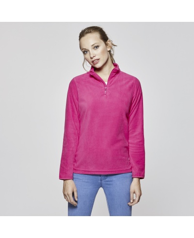 Microfleece with half zipper in neck and chin protector. Wristband with elastic ribbon to tone.