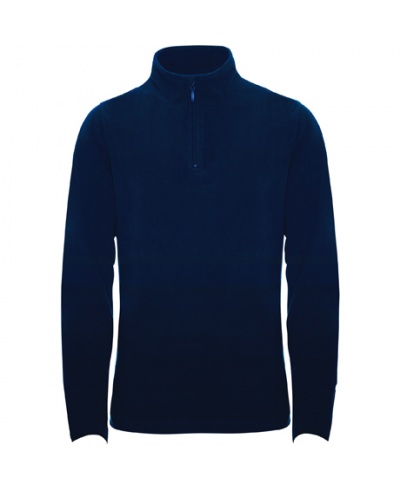 Microfleece with half zipper in neck and chin protector. Wristband with elastic ribbon to tone.