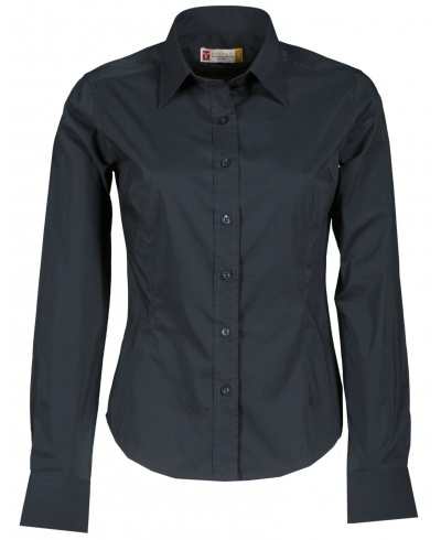 Women’s fine weave combed cotton fitted shirt, pleats at the front and back, Italian-style collar, tailored cuff with 2 buttons and button hole, stitched placket with matching buttons, with yoke, easy-care fabric