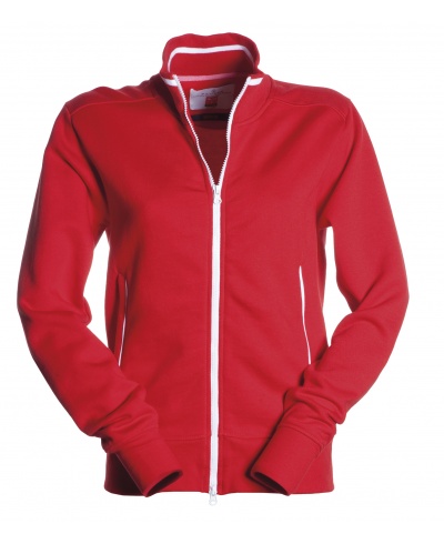 Women’s fitted sweatshirt with full, contrasting coloured plastic SBS zip with double metal pull; rib collar with contrasting trim, side pockets with