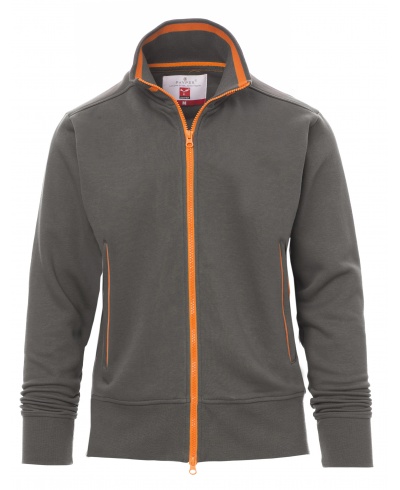 Women’s fitted sweatshirt with full, contrasting coloured plastic SBS zip with double metal pull; rib collar with contrasting trim, side pockets with