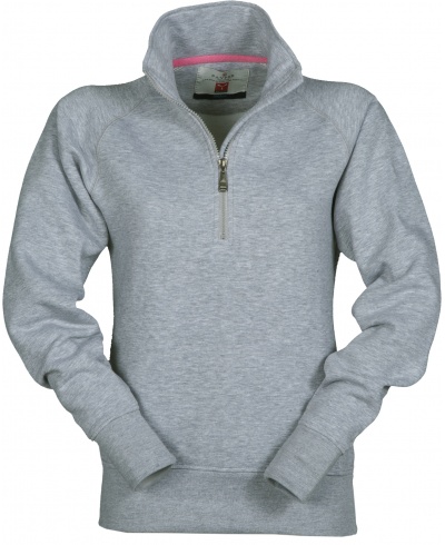 Women’s sweatshirt, with matching half zip in plastic with metal pull, raglan sleeves, stretch rib cuffs and hem, reinforced seams
