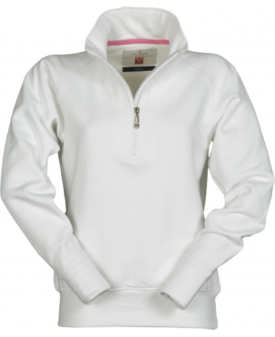 Women’s sweatshirt, with matching half zip in plastic with metal pull, raglan sleeves, stretch rib cuffs and hem, reinforced seams