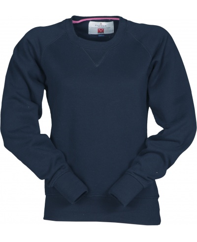 Women’s crew neck sweatshirt, with raglan sleeves, V-design neck stitching; stretch rib cuffs and hem, reinforced seams