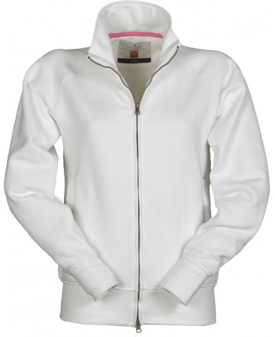 Women’s sweatshirt, with full, plastic-covered zip with double metal pull, raglan sleeves, two pockets with concealed zips, stretch rib cuffs and hem, reinforced seams