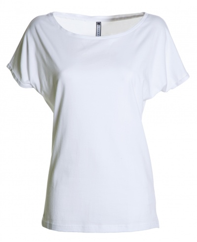 Women’s short-sleeved boat neck fitted t-shirt, with 1 cm neckband, short, close-fitting sleeves with narrow turn-up, side seams