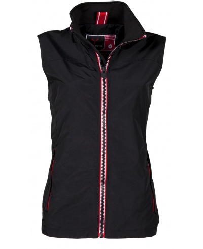 Women’s comfort-fit vest, 8 mm contrasting zip, two outer pockets with concealed zip. Unpadded, mesh lining, one inner zip pocket with opening for smartphone headphones, zip on the chest and bottom for easier printing and embroidery