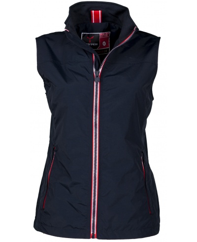 Women’s comfort-fit vest, 8 mm contrasting zip, two outer pockets with concealed zip. Unpadded, mesh lining, one inner zip pocket with opening for smartphone headphones, zip on the chest and bottom for easier printing and embroidery