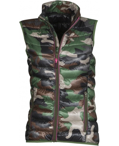 Women’s comfort-fit jacket with contrasting nylon zip, thin-edge cuffs and hem, two outer pockets; padded with down-effect polyester, three inner pockets