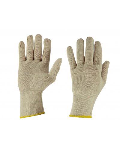 Thread 10G cotton gloves, edged knit cuff; Features: soft - Strengths: comfort, sensitive, precision; Areas of application: light, delicate use, precision assembly and handling in dry conditions