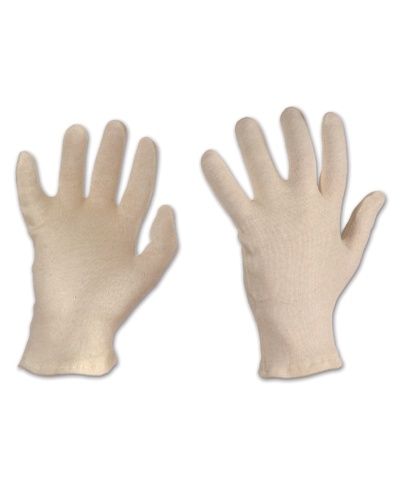 Cotton glove liners, natural colour; Characteristics: soft; Strengths: fit, sensitivity; Areas of application: general handling in a dry environment.