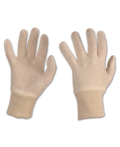 Cotton glove liners with cuff, natural colour; Characteristics: soft; Strengths: fit, sensitivity; Areas of application: general handling in a dry environment