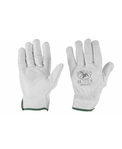 Cowhide full-grain edged; Features: soft, strong, resistant; Strengths: comfort, easy to use; Areas of application: general handling in dry conditions