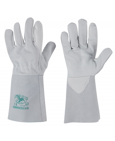 Cowhide grain gloves with split leather back - reinforced - wing thumb - 14 cm split leather cuff; Features: soft, strong, resistant; Strengths: comfort, easy to use; Areas of application: general handling in dry conditions