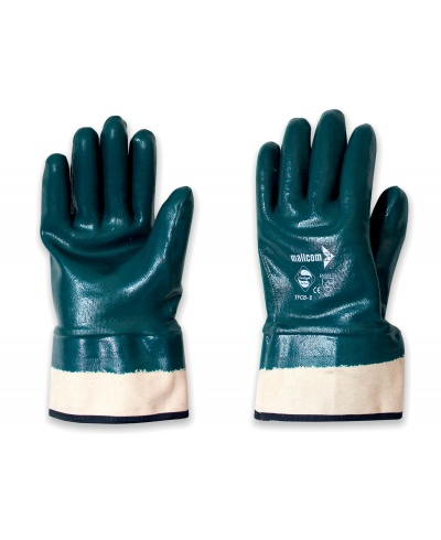 NBR gloves, fully lined, sleeve, 24 G interlock coated cotton, sanitised; Features: sturdy, very resistant; Strengths: fit, grip, protection, resistant to liquids, practical; Areas of application: heavy-duty handling, metals, sharp and abrasive materials, oil, grease, dirt, hydrocarbons, lubricants